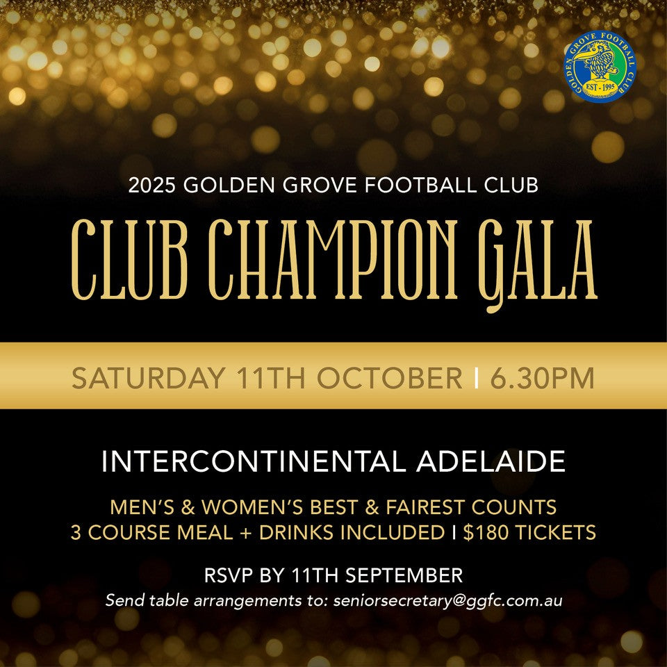 Join us at the stunning InterContinental Adelaide on Saturday, 11 October for an unforgettable evening of celebration, recognition, and connection with the GGFC family.